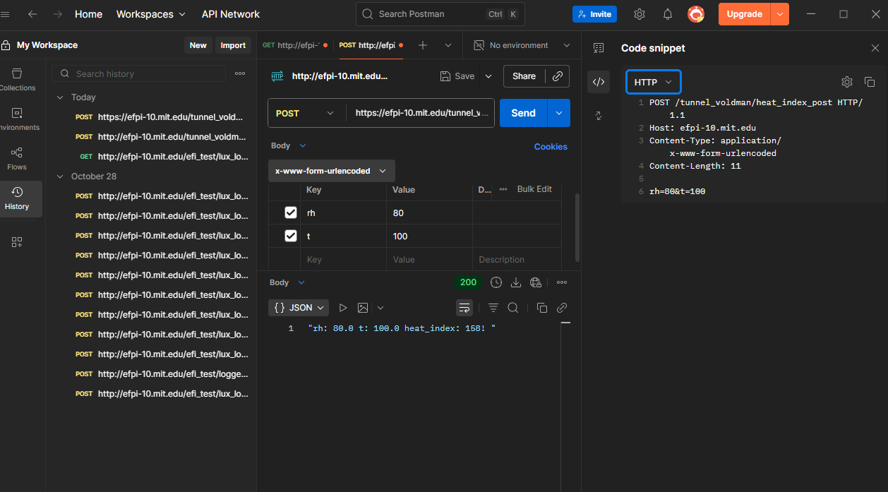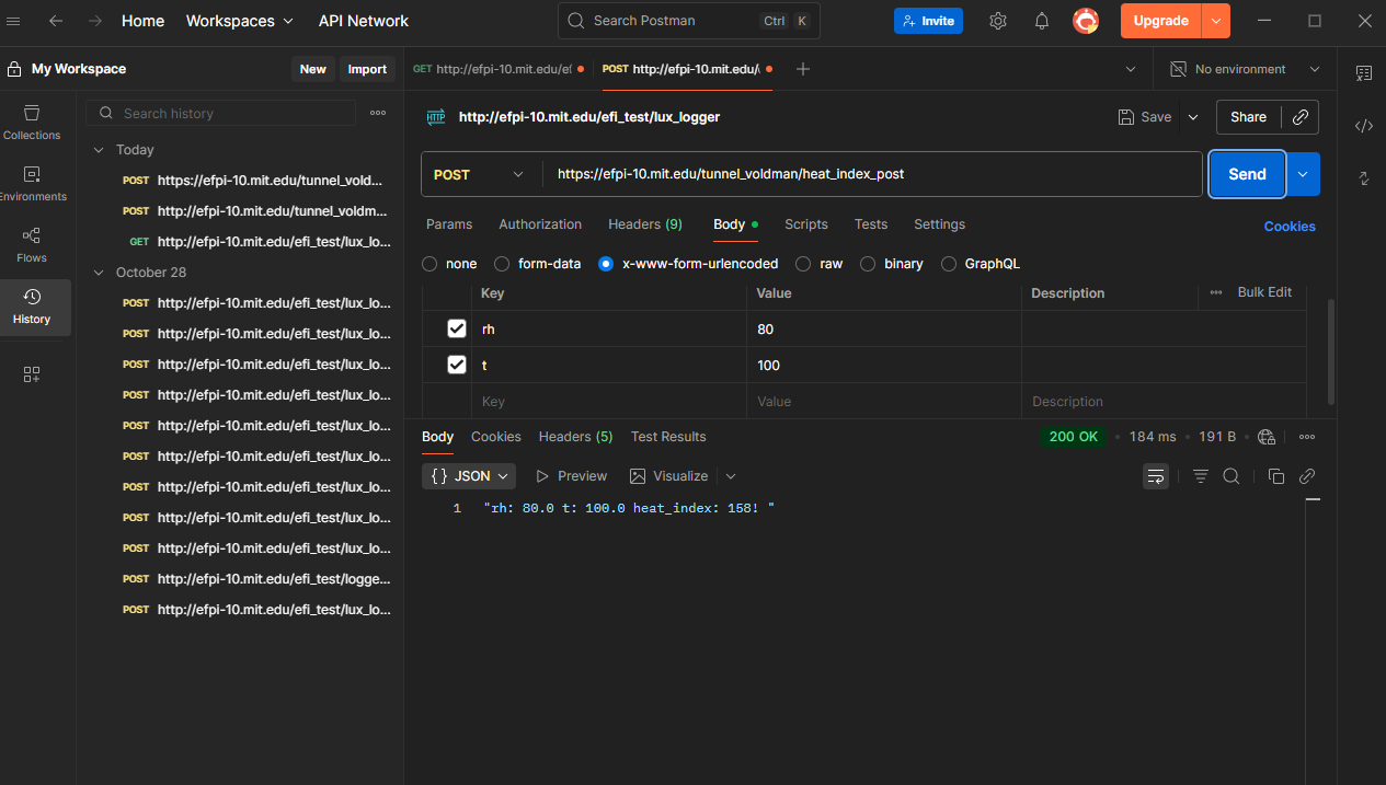 Create a new endpoint like: heat_index_post that accepts rh and t as key-value pairs in the POST body, such as rh=80&t=100 where rh and t are the usual suspects.