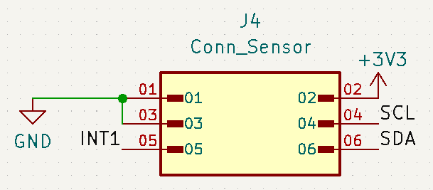 Thus, our sensor board will include connections for power (3.3V and GND) and I2C communications (SDA and SCL lines).