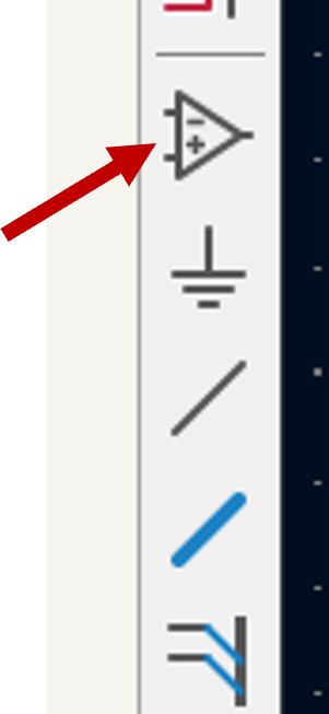 Let's add our passive components (resistors, capacitors, LEDs) first. To add a part (or symbol) to our schematic, press the letter A on your keyboard or click on the Add Symbol icon on the right of the schematic editor window.