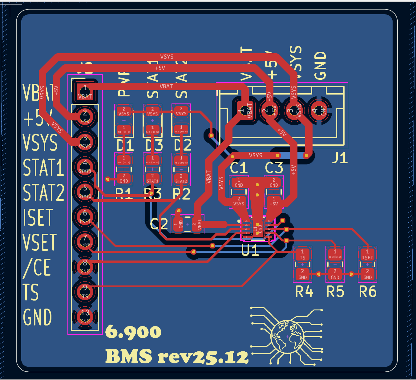 Finally, we have R6, which is connected between the ISET pin and ground. This sets the maximal charge current for charging the battery. We want to go fast, so let's choose the maximum current allowed, which from I_{CHG\_RANGE} in the datasheet is 1000 mA.