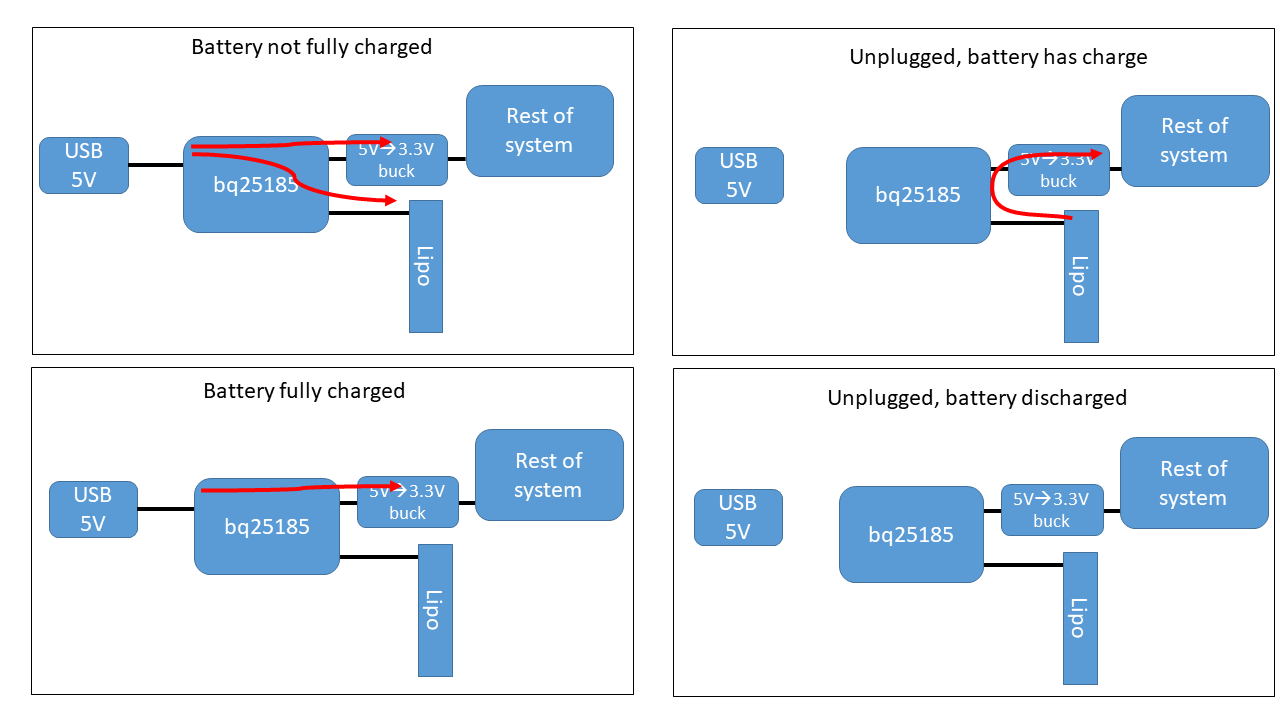 But it gets even more complicated. If we're running off of the battery, and the battery gets too discharged, we'd like to be able to plug the system in, and have the system continue working, while the battery is charging. After all, when you plug your phone in to charge, you expect the phone's battery to charge and the phone to still work.