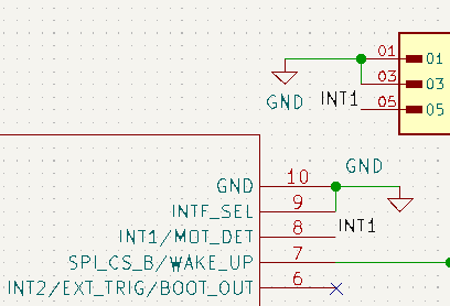 A number of students interpreted the comment about not needing resistors R1 and R2 on the interrupt pins as suggesting that the accelerometer's INT1 pin should be connected directly to 3V3. That is not correct.