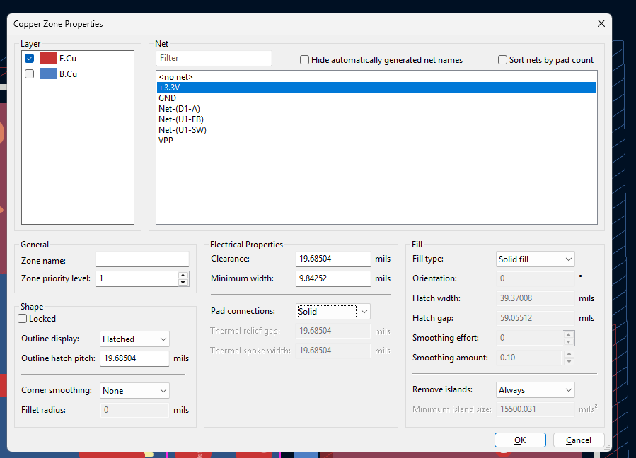 One thing that would be nice to experiment here is with non-standard traces. You can see in their recommended layout they're clearly doing some nice beefy pours to make sure all the copper is getting used. While big, thick standard traces are definitely good, you may also want to try to emulate these pours. You've done one pour so far, a ground pour on the back side, but now you can get some practice doing some smaller ones.