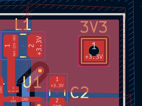 - Big, short traces on any route carrying a lot of current. The inductor and capacitors we have low series resistances, it would be a shame to throw that characteristic away by putting long nasty high-resistance PCB traces in your circuit introducing lots of parasitics.
