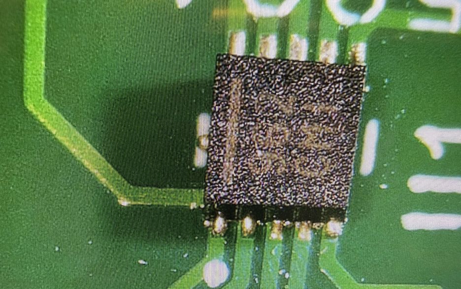 - Before attaching the through-hole components, inspect your solder job under a microscope. In particular, look at the FXLS8962 pads at and angle and ensure that there are no solder bridges between pads.