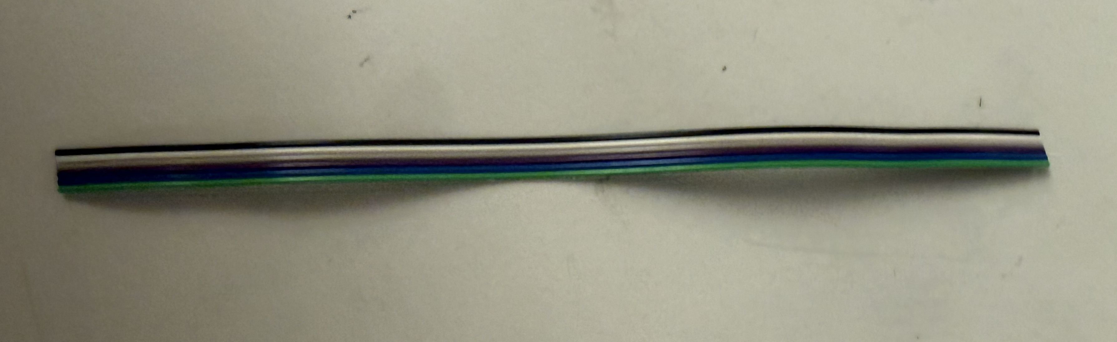 - Peel off 6 conductors from a ribbon cable and cut into a ~6" (15 cm) long segment. You can use the gray ribbon cable or the multicolored one. I like to use colors because it helps me keep track of orientation, but you do you.