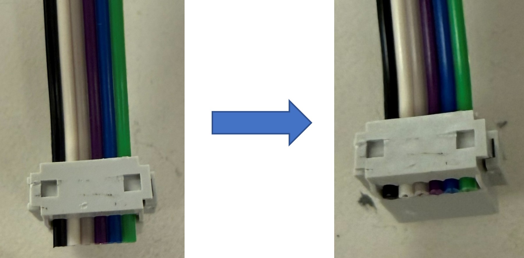 - Finally, because we are not animals, use a diagonal cutter to cut the overhanging cable bit flush with the connector.